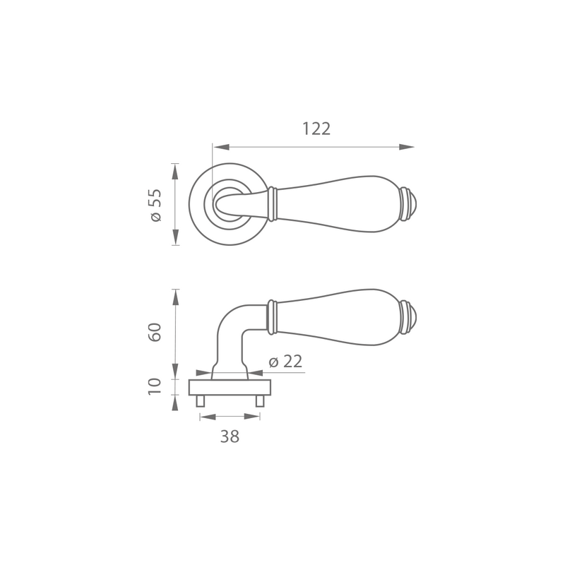Rozetová klika na interiérové dveře s kulatou rozetou je vyrobená odléváním z kvalitní slitiny zinku v kombinaci s keramikou a je povrchově upravená.