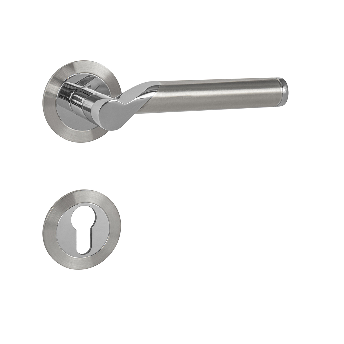 Rozetová klika na interiérové dveře s magnetickou plochou kulatou rozetou je vyrobena z vysoce kvalitní nerezavějící oceli, známé jako nerez a je povrchově upravena. Rozeta má průměr 55 mm a tloušťku jen 3 mm. Je barevně stabilní a odolná vůči opotřebení.