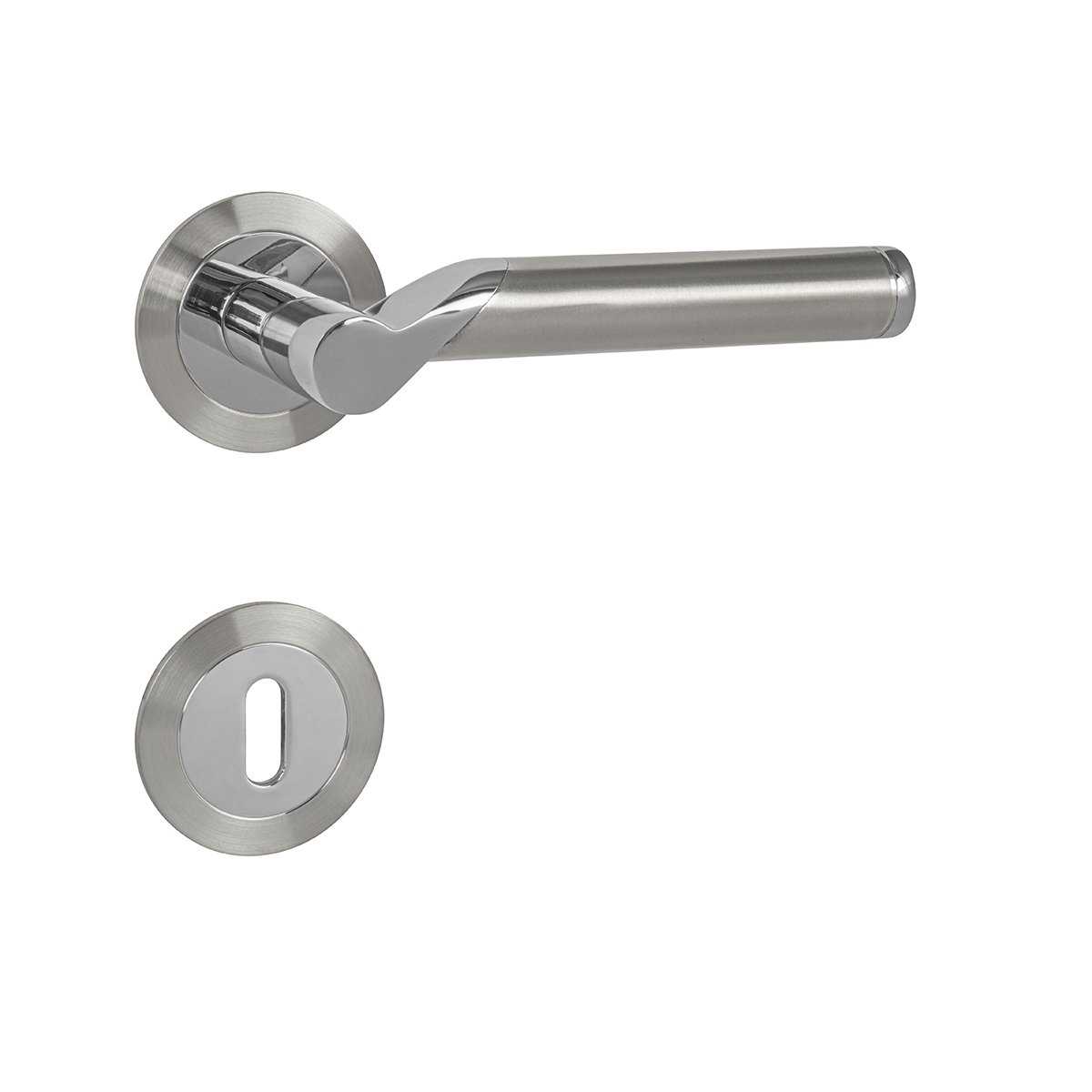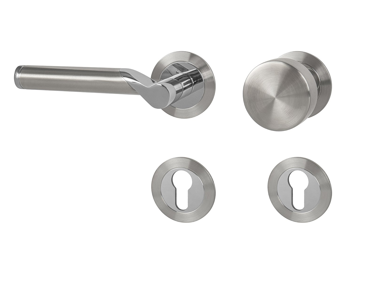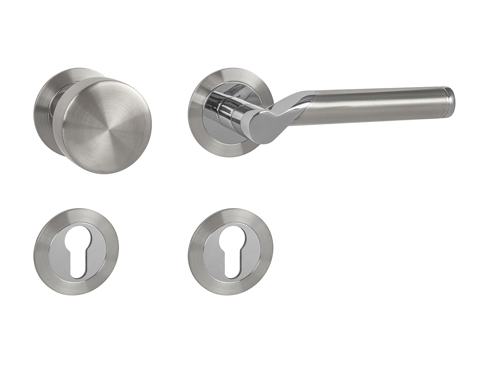 Rozetová klika na interiérové dveře s magnetickou plochou kulatou rozetou je vyrobena z vysoce kvalitní nerezavějící oceli, známé jako nerez a je povrchově upravena. Rozeta má průměr 55 mm a tloušťku jen 3 mm. Je barevně stabilní a odolná vůči opotřebení.