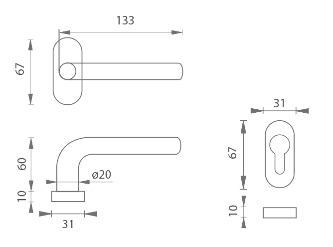 Rozetová klika s oválnou úzkou rozetou pro dveře s úzkým profilem (např.: zahradní branky a branky plotů) je vyrobena z vysoce kvalitní nerezavějící oceli, známé jako nerez a je povrchově upravena. Mechanismus kliky obsahuje vratnou pružinu.