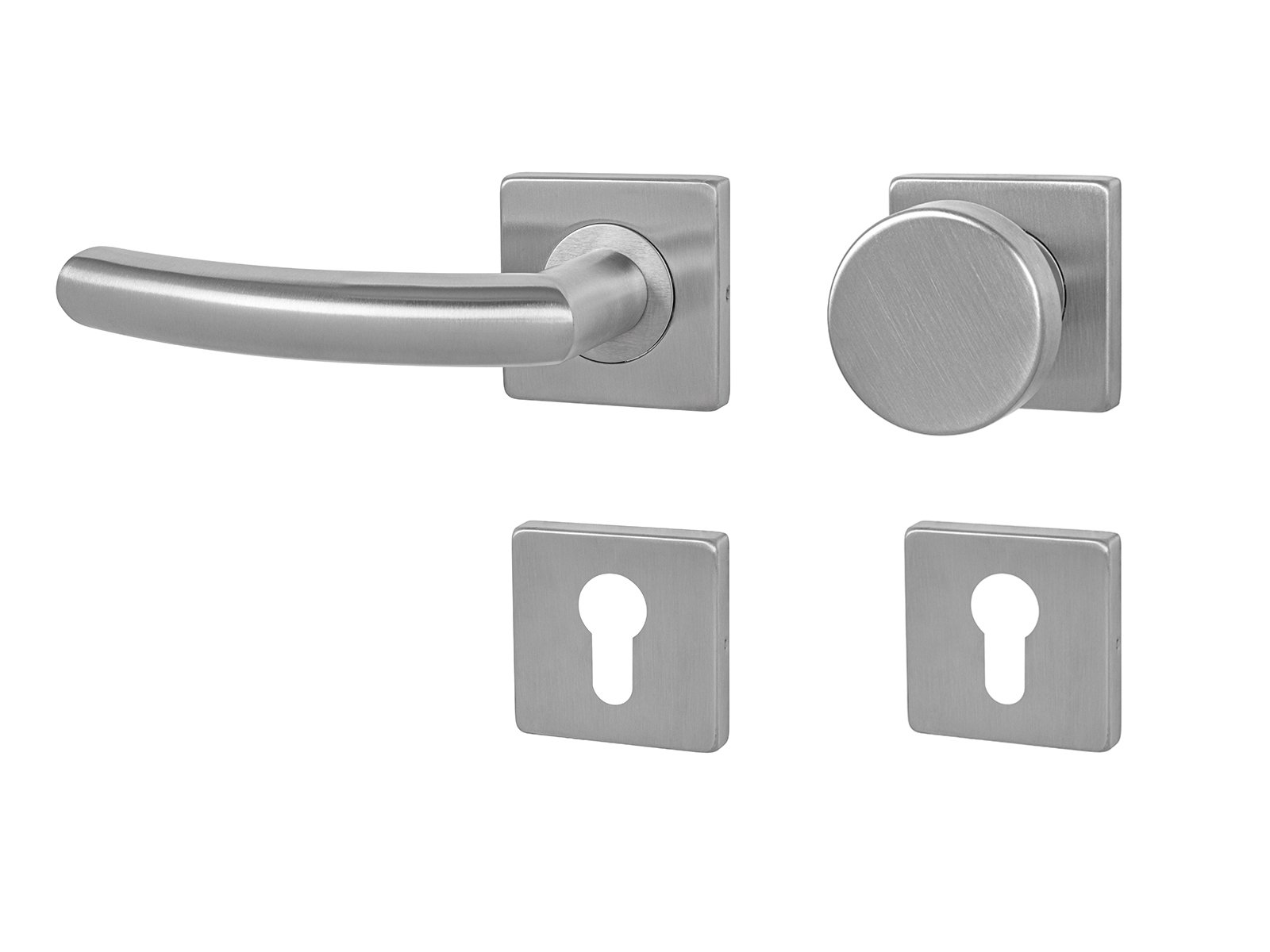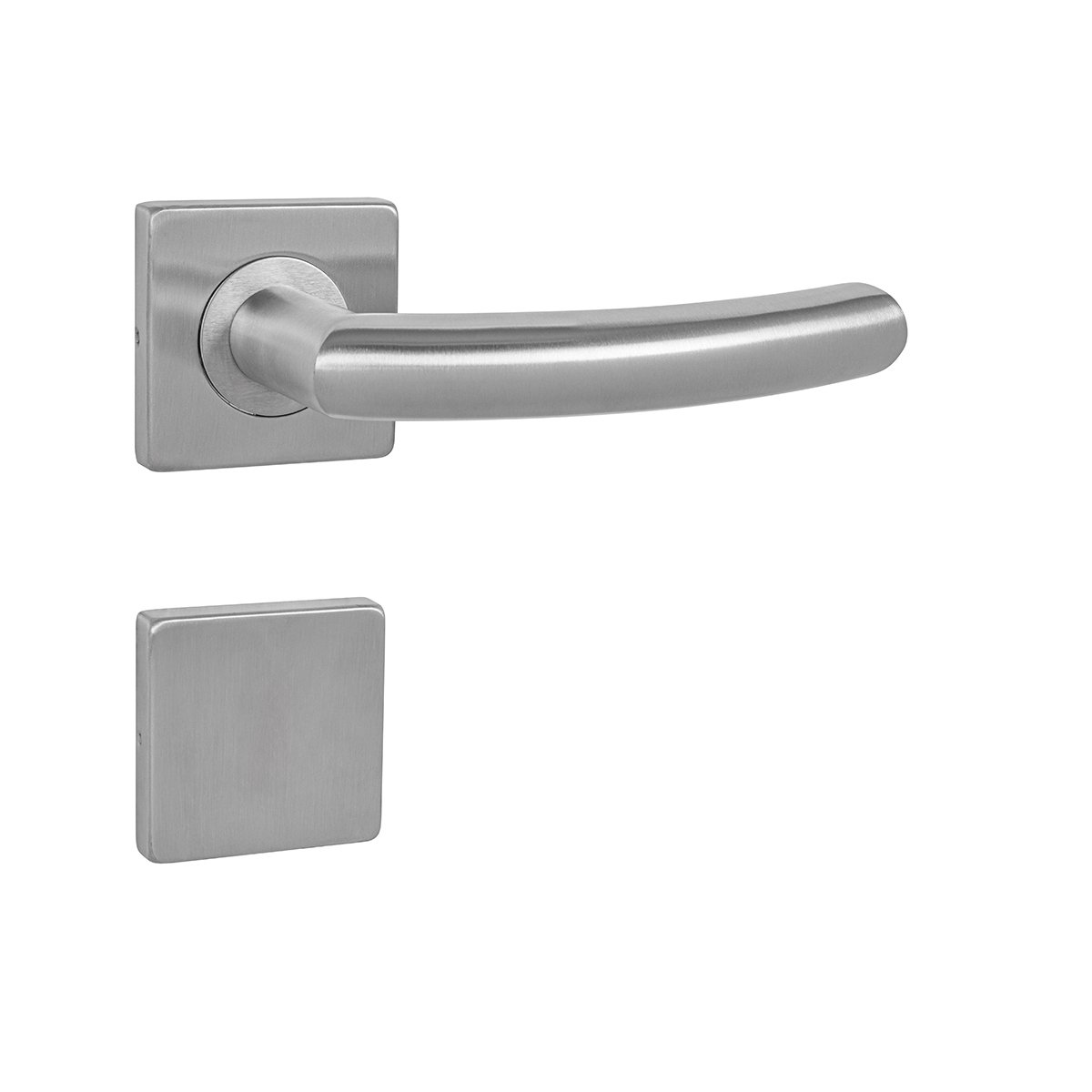 Rozetová klika na interiérové ​​dveře s hranatou rozetou je vyrobena z vysoce kvalitní nerezavějící oceli, známé jako nerez a je povrchově upravena. Rozeta má rozměry 54 mm x 54 mm a tloušťku 9 mm. Je barevně stabilní a odolná vůči opotřebení. Kování je testováno dle normy ČSN EN 1906: 2012 na 200 000 cyklů.