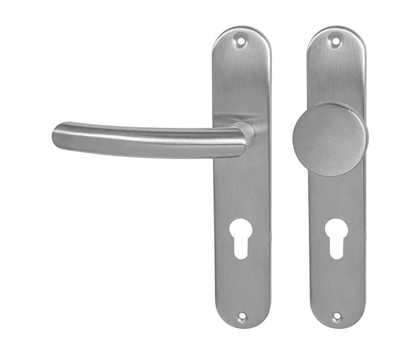 Štítová klika na interiérové ​​dveře s oválným štítem je vyrobena z vysoce kvalitní nerezavějící oceli, známé jako nerez a je povrchově upravena. Oválný štít má rozměry 42 mm x 225 mm.