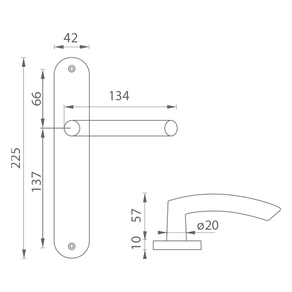 Štítová klika na interiérové ​​dveře s oválným štítem je vyrobena z vysoce kvalitní nerezavějící oceli, známé jako nerez a je povrchově upravena. Oválný štít má rozměry 42 mm x 225 mm.