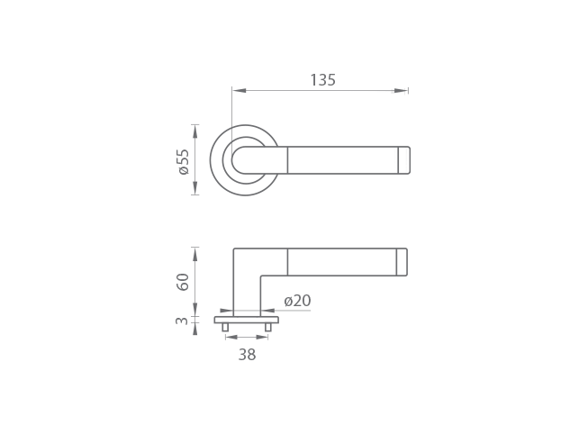 Rozetová klika na interiérové dveře s magnetickou plochou kulatou rozetou z vysoce kvalitní nerezavějící oceli, známé jako nerez a je povrchově upravena. Rozeta má průměr 55 mm a tloušťku jen 3 mm.