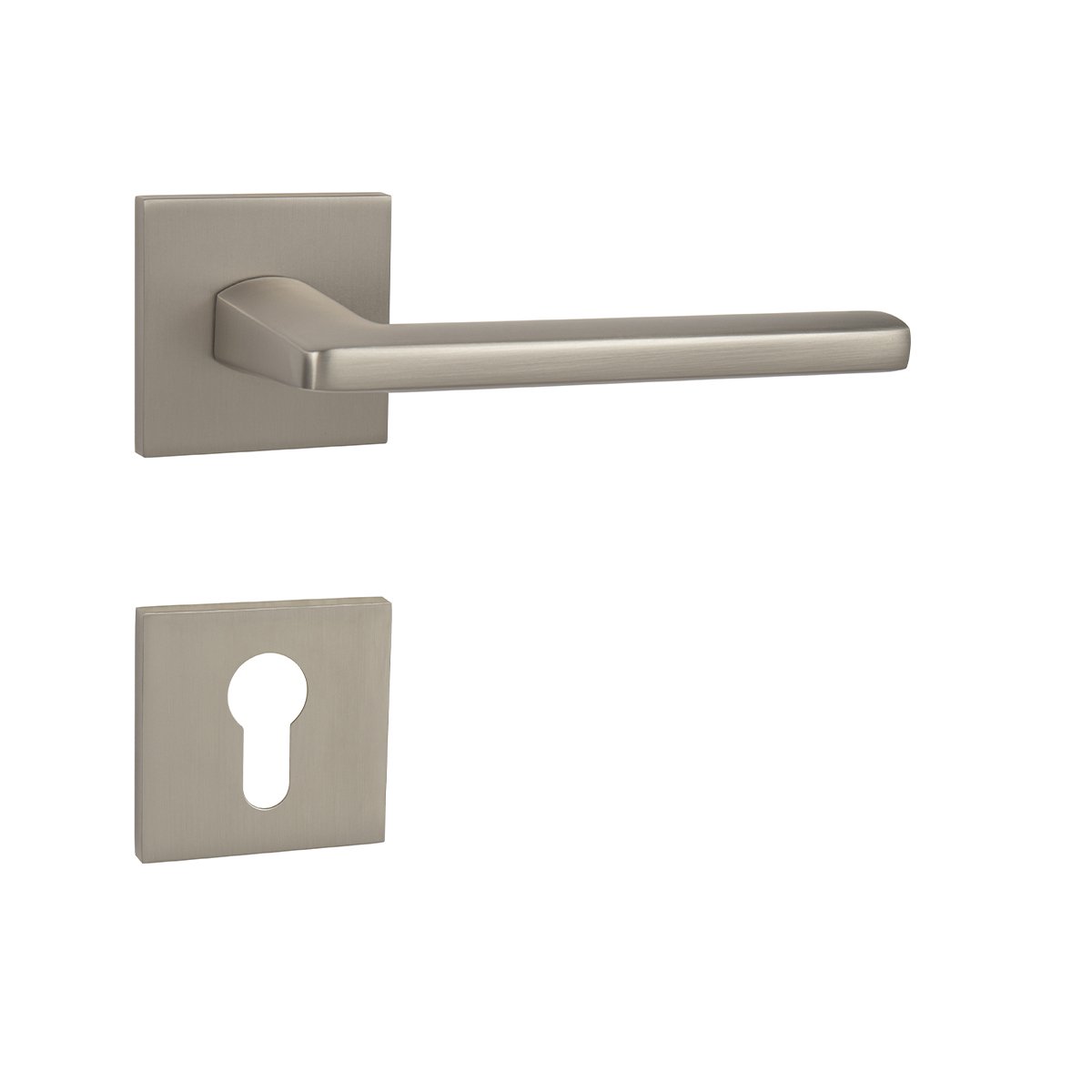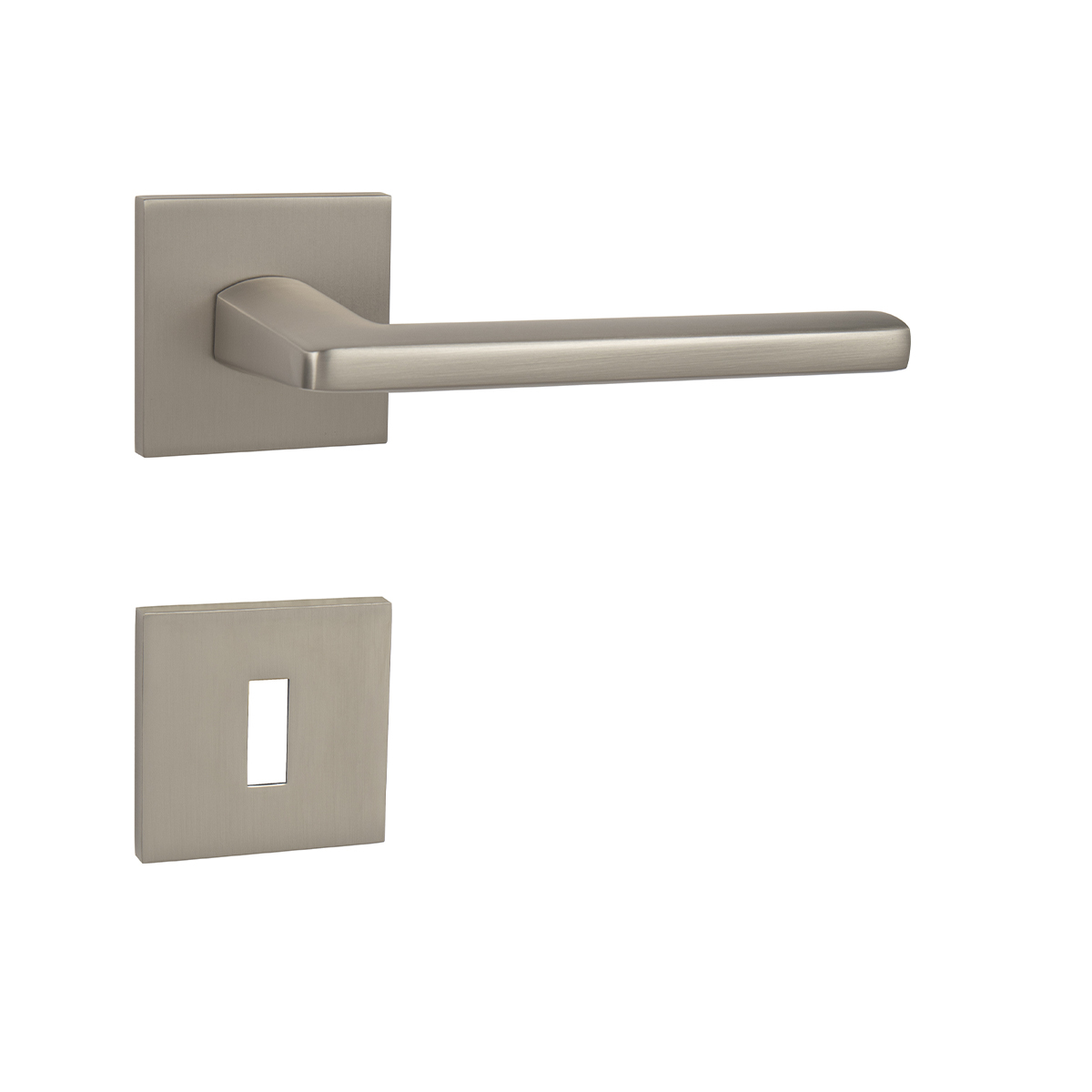 Rozetová klika na interiérové ​​dveře s hranatou rozetou je vyrobena odléváním z kvalitních slitin zinku a hliníku a je povrchově upravena. Klika je povrchově upravována galvanizací a vyznačuje se vysokou odolností proti oděru. Kování je testováno na 100 000 cyklů.