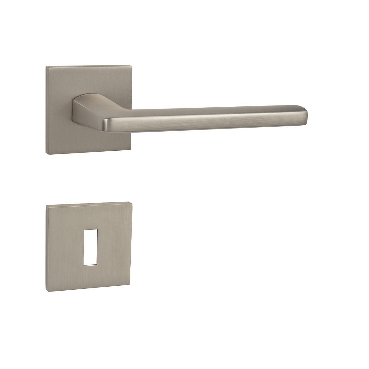 Rozetová klika na interiérové ​​dveře s hranatou rozetou je vyrobena odléváním z kvalitních slitin zinku a hliníku a je povrchově upravena. Klika je povrchově upravována galvanizací a vyznačuje se vysokou odolností proti oděru. Kování je testováno na 100 000 cyklů.