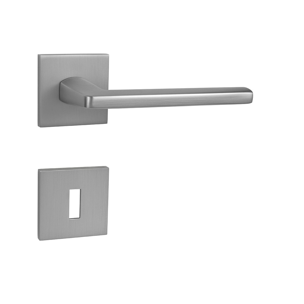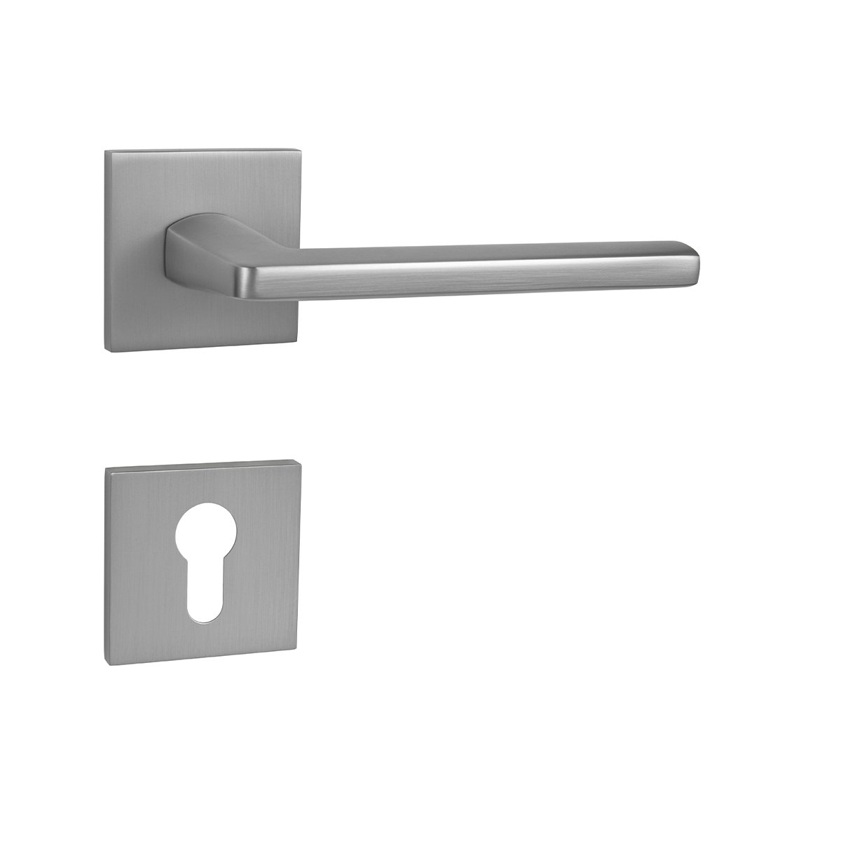 Rozetová klika na interiérové ​​dveře s hranatou rozetou je vyrobena odléváním z kvalitních slitin zinku a hliníku a je povrchově upravena. Klika je povrchově upravována galvanizací a vyznačuje se vysokou odolností proti oděru. Kování je testováno na 100 000 cyklů.