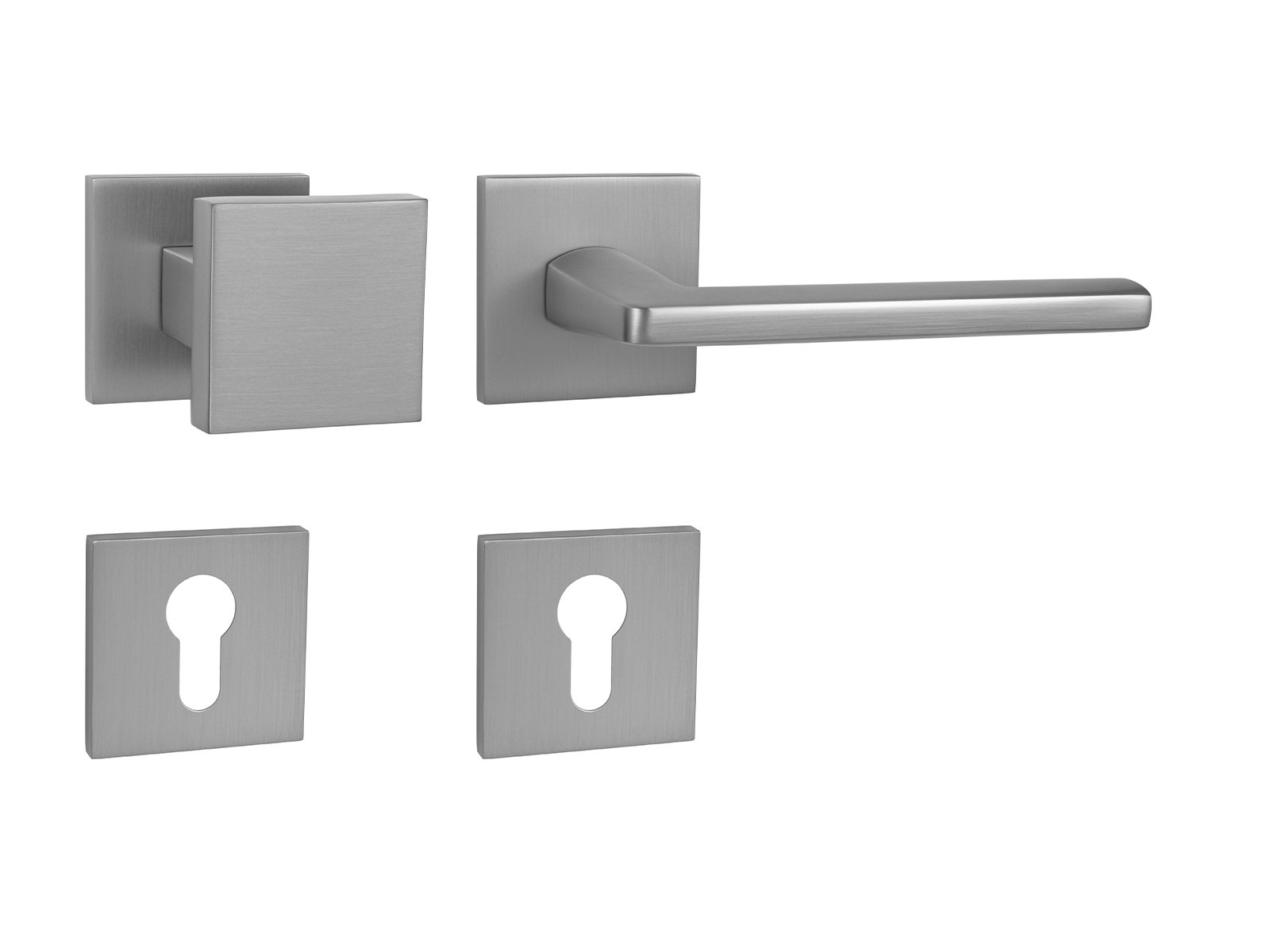 Rozetová klika na interiérové ​​dveře s hranatou rozetou je vyrobena odléváním z kvalitních slitin zinku a hliníku a je povrchově upravena. Klika je povrchově upravována galvanizací a vyznačuje se vysokou odolností proti oděru. Kování je testováno na 100 000 cyklů.