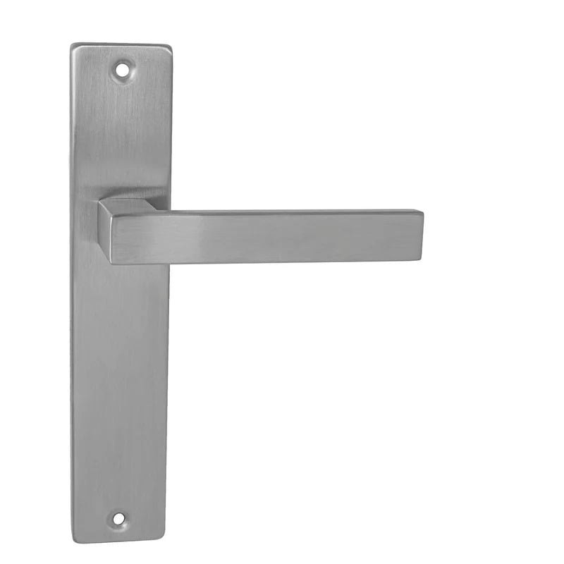 Štítová klika na interiérové ​​dveře s hranatým štítem je vyrobena z vysoce kvalitní nerezavějící oceli, známé jako nerez a je povrchově upravena. Hranatý štít má rozměry 42 mm x 218 mm.