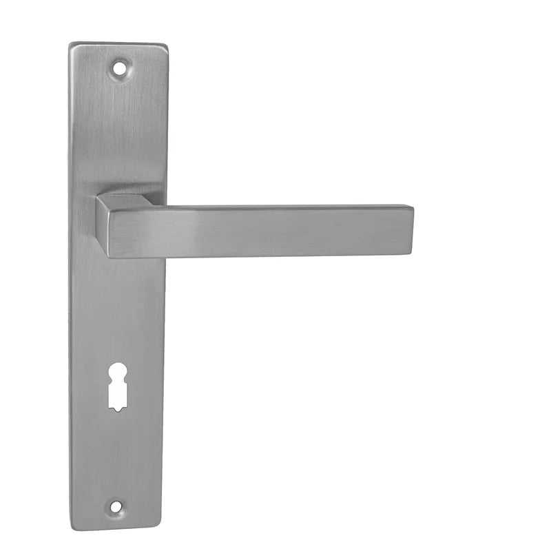 Štítová klika na interiérové ​​dveře s hranatým štítem je vyrobena z vysoce kvalitní nerezavějící oceli, známé jako nerez a je povrchově upravena. Hranatý štít má rozměry 42 mm x 218 mm.
