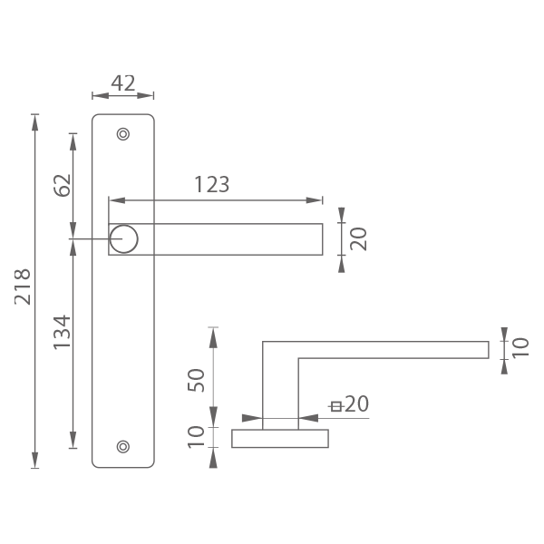 Štítová klika na interiérové ​​dveře s hranatým štítem je vyrobena z vysoce kvalitní nerezavějící oceli, známé jako nerez a je povrchově upravena. Hranatý štít má rozměry 42 mm x 218 mm.