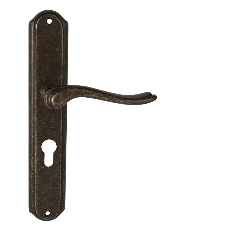 Štítová klika na interiérové dveře s oválným štítem je vyrobená z materiálů vysoké kvality - mosaz a je povrchově upravená.