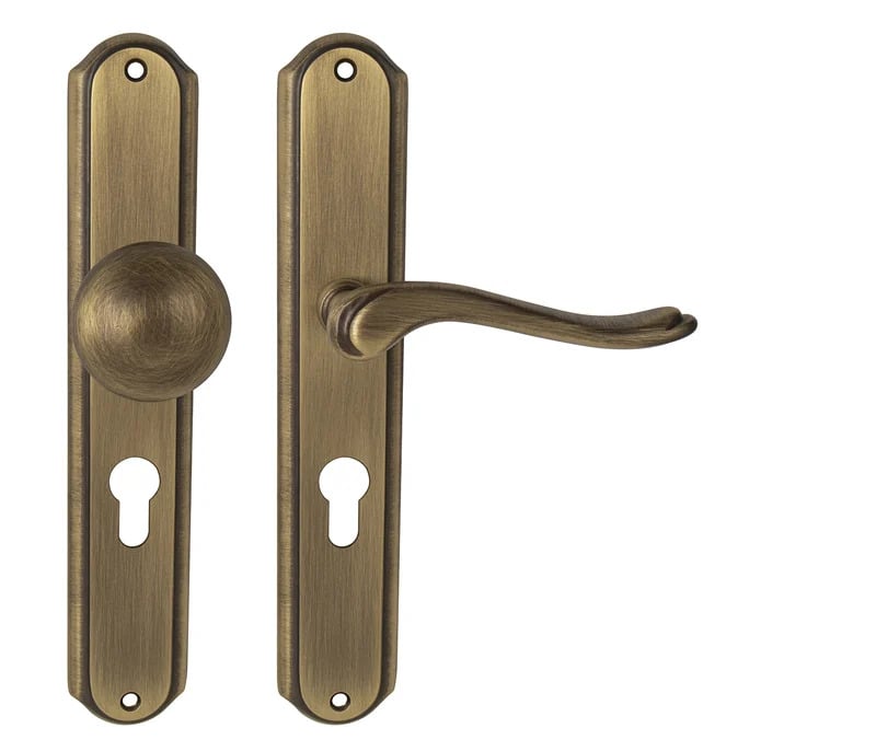Štítová klika na interiérové dveře s oválným štítem je vyrobená z materiálů vysoké kvality - mosaz a je povrchově upravená.