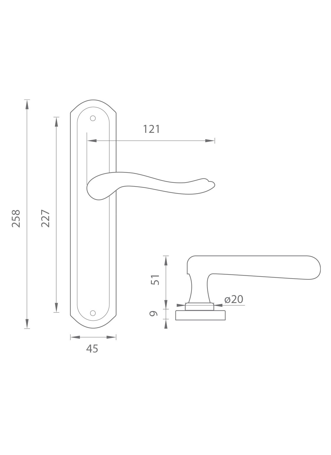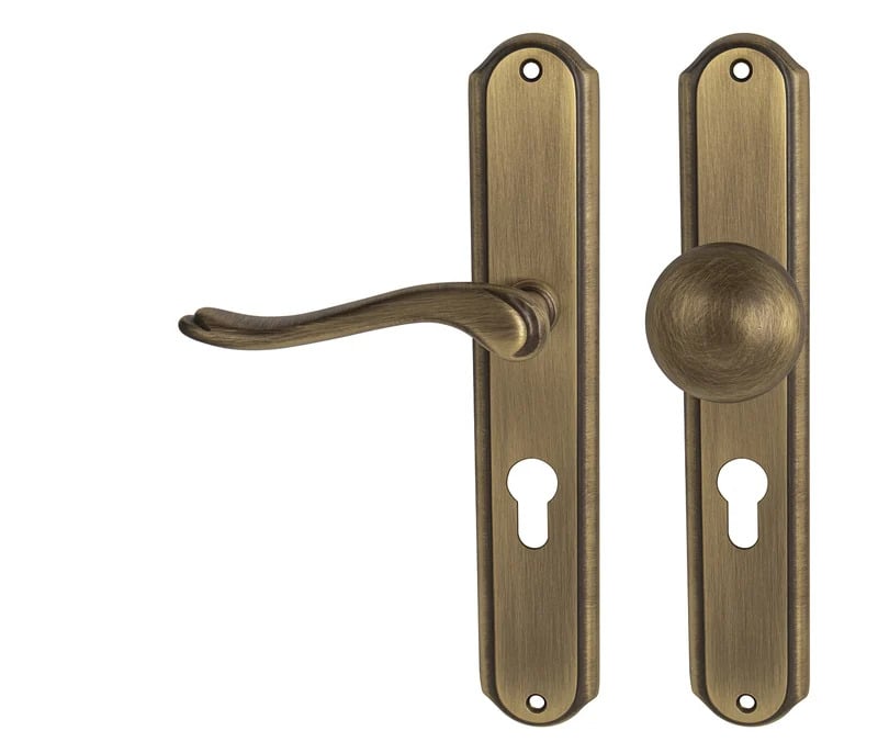 Štítová klika na interiérové dveře s oválným štítem je vyrobená z materiálů vysoké kvality - mosaz a je povrchově upravená.