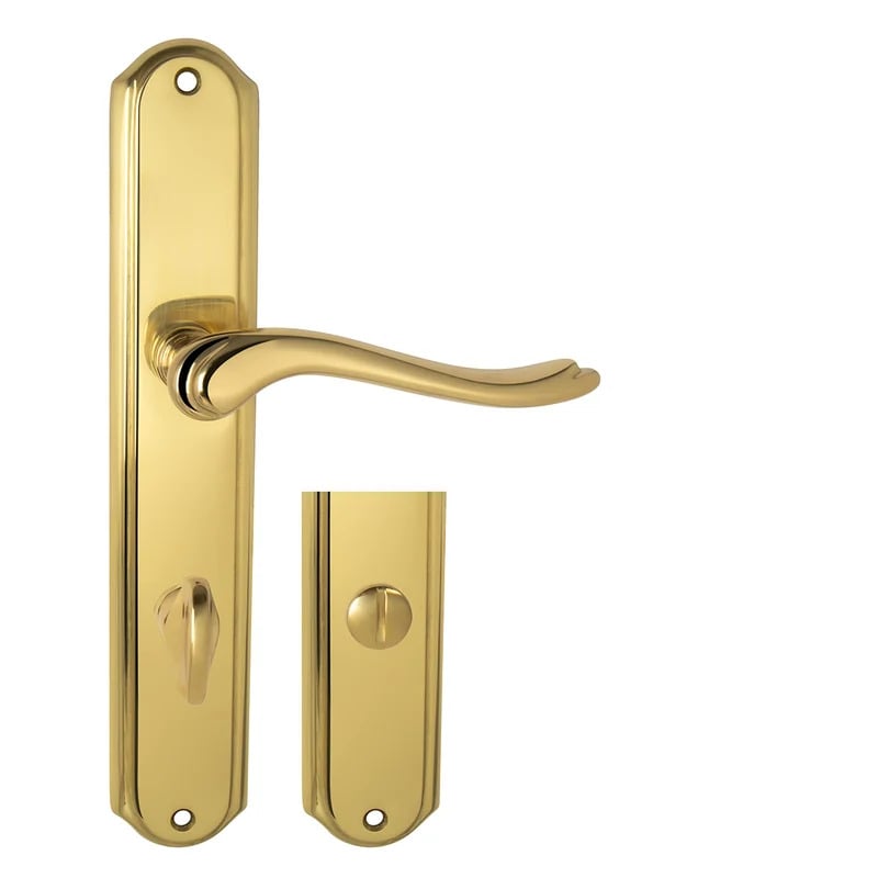 Štítová klika na interiérové dveře s oválným štítem je vyrobená z materiálů vysoké kvality - mosaz a je povrchově upravená.