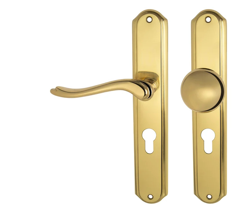 Štítová klika na interiérové dveře s oválným štítem je vyrobená z materiálů vysoké kvality - mosaz a je povrchově upravená.