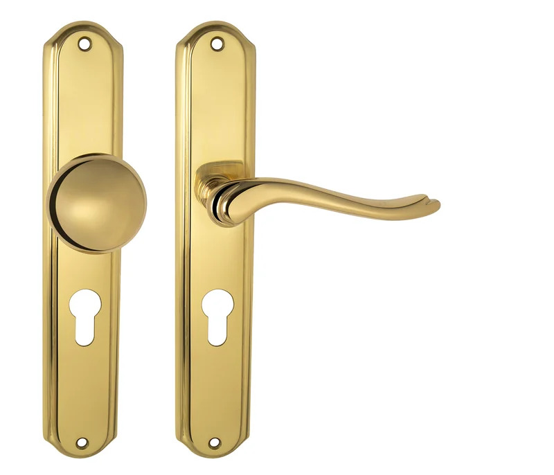 Štítová klika na interiérové dveře s oválným štítem je vyrobená z materiálů vysoké kvality - mosaz a je povrchově upravená.