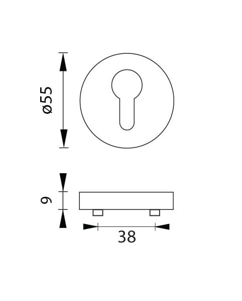 Kulatá rozeta je vyrobena z vysoce kvalitní nerezavějící oceli, známé jako nerez a je povrchově upravena. Rozeta má průměr 54 mm, tloušťku 9 mm a oválný otvor pro interiérový klíč (BB), otvor pro cylindrickou vložku (PZ), WC set s vmontovaným klíčem, WC set s vmontovaným klíčem a ukazatelem nebo rozeta bez otvoru tzv. záslepka. Balení obsahuje 2 kusy rozet (pár) a rozety WC jsou v balení jako set.