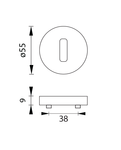 Kulatá rozeta je vyrobena z vysoce kvalitní nerezavějící oceli, známé jako nerez a je povrchově upravena. Rozeta má průměr 54 mm, tloušťku 9 mm a oválný otvor pro interiérový klíč (BB), otvor pro cylindrickou vložku (PZ), WC set s vmontovaným klíčem, WC set s vmontovaným klíčem a ukazatelem nebo rozeta bez otvoru tzv. záslepka. Balení obsahuje 2 kusy rozet (pár) a rozety WC jsou v balení jako set.