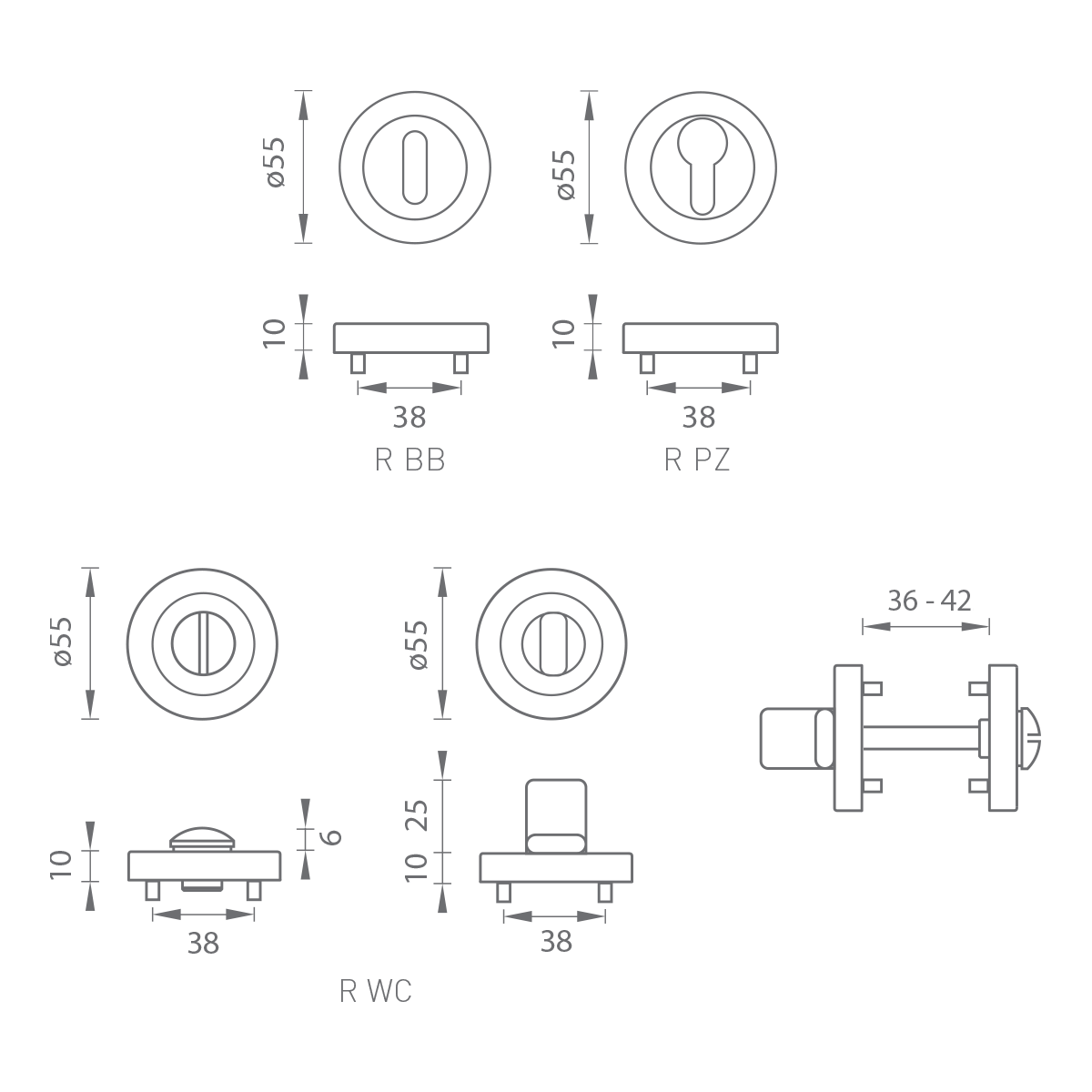 MP - ROZETA - R (šroubovací) OGS - Bronz česaný matný - rozety BB (4/4)