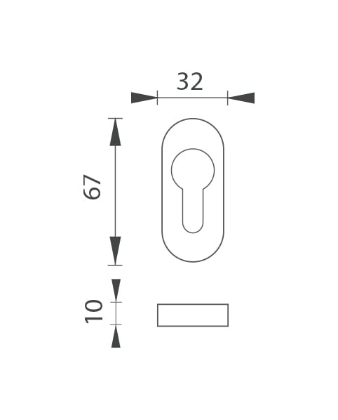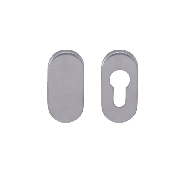 Úzká oválná rozeta je vyrobena z vysoce kvalitní nerezavějící oceli, známé jako nerez a je povrchově upravena. Rozeta má rozměry 32 mm x 67 mm, tloušťku 10 mm a otvor pro cylindrickou vložku (PZ) nebo rozeta bez otvoru tzv. záslepka. Balení obsahuje 2 kusy rozet (pár).