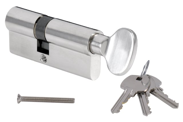 Stavební cylindrická vložka s knoflíkem je vyrobená z materiálů vysoké kvality - hliník a je povrchově upravená. Je to nejpoužívanější typ vložky na uzamykání dveří.