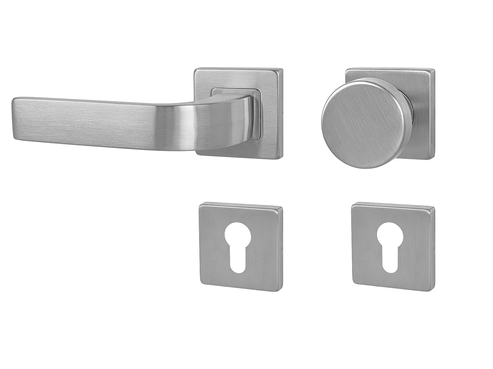 Rozetová klika na interiérové dveře s hranatou rozetou je vyrobena z vysoce kvalitní nerezavějící oceli, známé jako nerez a je povrchově upravena. Rozeta má rozměry 54 mm x 54 mm a tloušťku 9 mm. Je barevně stabilní a odolná proti opotřebení. Kování je testované podle normy ČSN EN 1906:2012 na 200 000 cyklů.