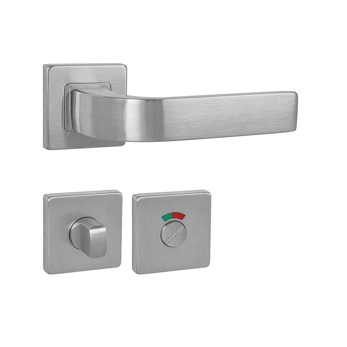 Rozetová klika na interiérové dveře s hranatou rozetou je vyrobena z vysoce kvalitní nerezavějící oceli, známé jako nerez a je povrchově upravena. Rozeta má rozměry 54 mm x 54 mm a tloušťku 9 mm. Je barevně stabilní a odolná proti opotřebení. Kování je testované podle normy ČSN EN 1906:2012 na 200 000 cyklů.
