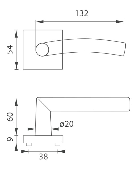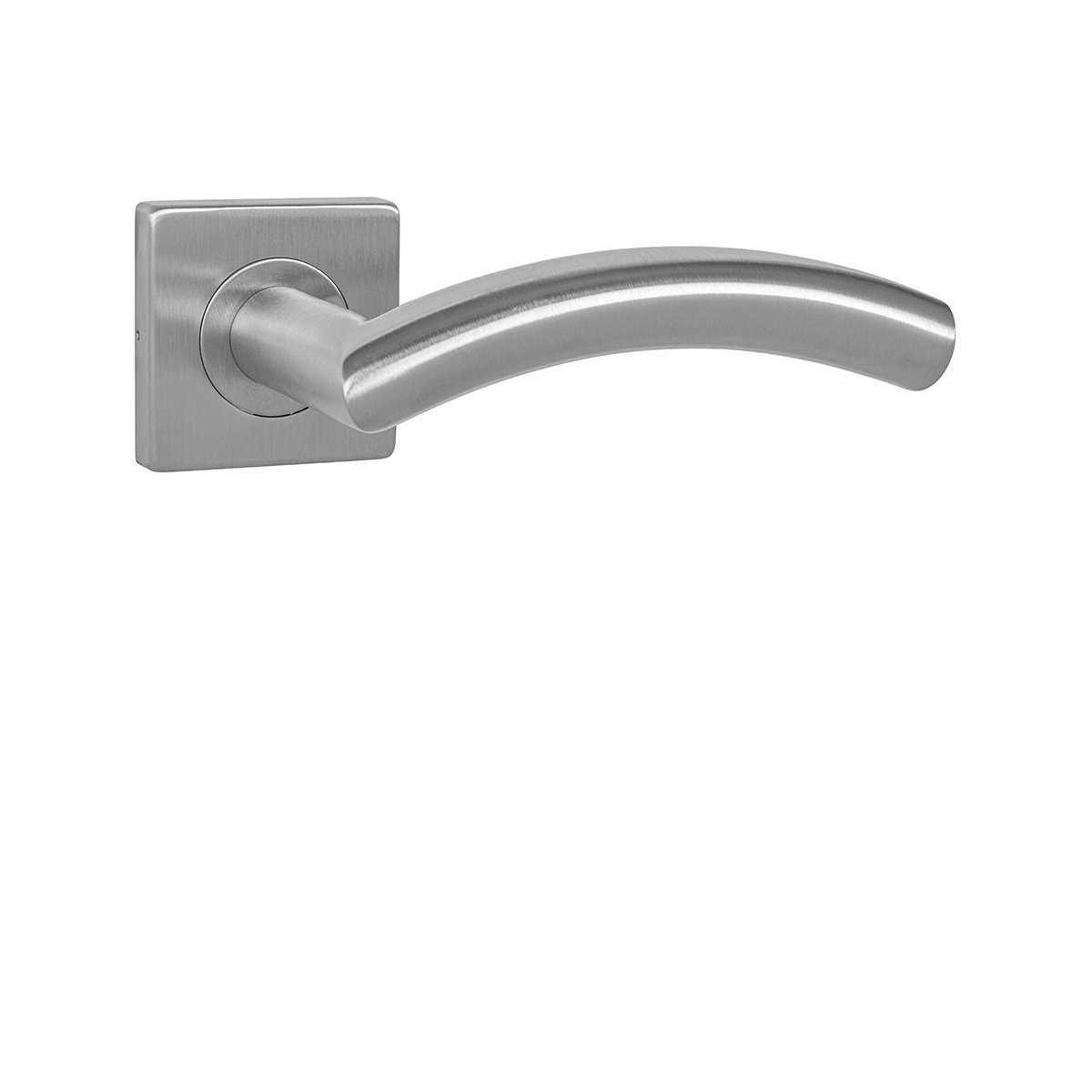 Rozetová klika na interiérové dveře s hranatou rozetou je vyrobena z vysoce kvalitní nerezavějící oceli, známé jako nerez a je povrchově upravena. Rozeta má rozměry 54 mm x 54 mm a tloušťku 9 mm. Je barevně stabilní a odolná vůči opotřebení. Kování je testováno dle normy ČSN EN 1906: 2012 na 200 000 cyklů.
