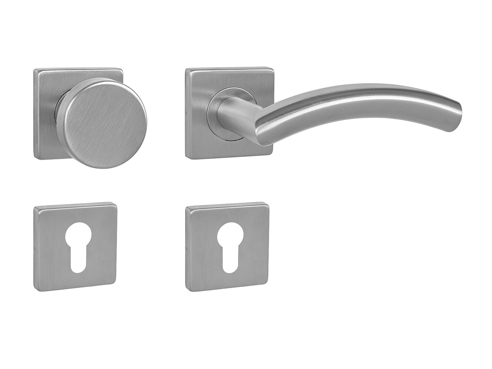 Rozetová klika na interiérové ​​dveře s hranatou rozetou je vyrobena z vysoce kvalitní nerezavějící oceli, známé jako nerez a je povrchově upravena. Rozeta má rozměry 54 mm x 54 mm a tloušťku 9 mm. Je barevně stabilní a odolná vůči opotřebení. Kování je testováno dle normy ČSN EN 1906: 2012 na 200 000 cyklů.