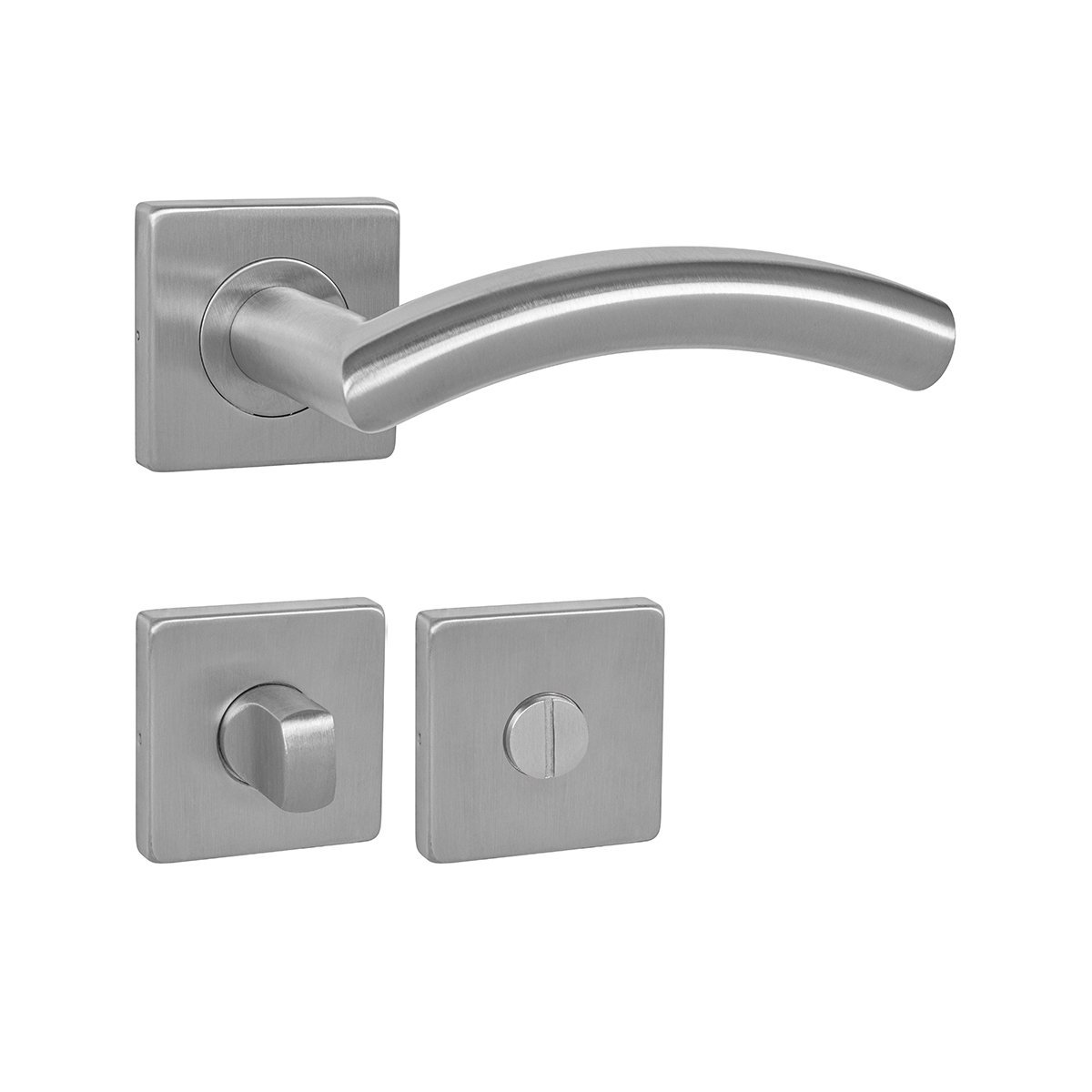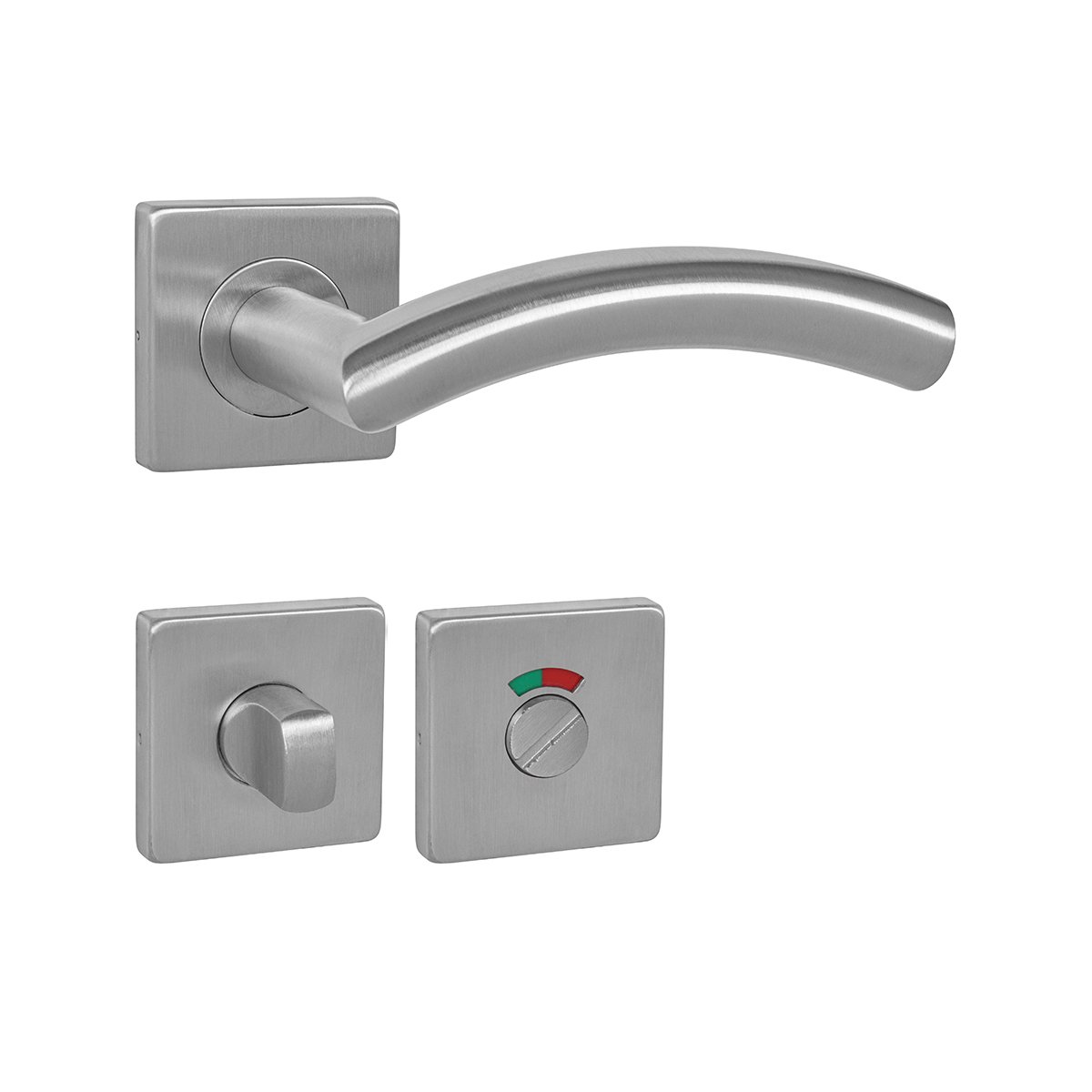 Rozetová klika na interiérové ​​dveře s hranatou rozetou je vyrobena z vysoce kvalitní nerezavějící oceli, známé jako nerez a je povrchově upravena. Rozeta má rozměry 54 mm x 54 mm a tloušťku 9 mm. Je barevně stabilní a odolná vůči opotřebení. Kování je testováno dle normy ČSN EN 1906: 2012 na 200 000 cyklů.