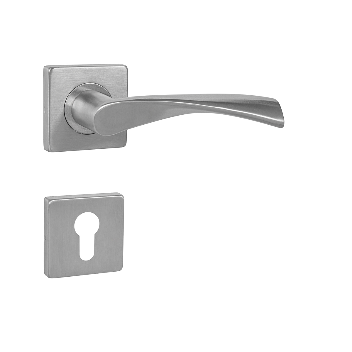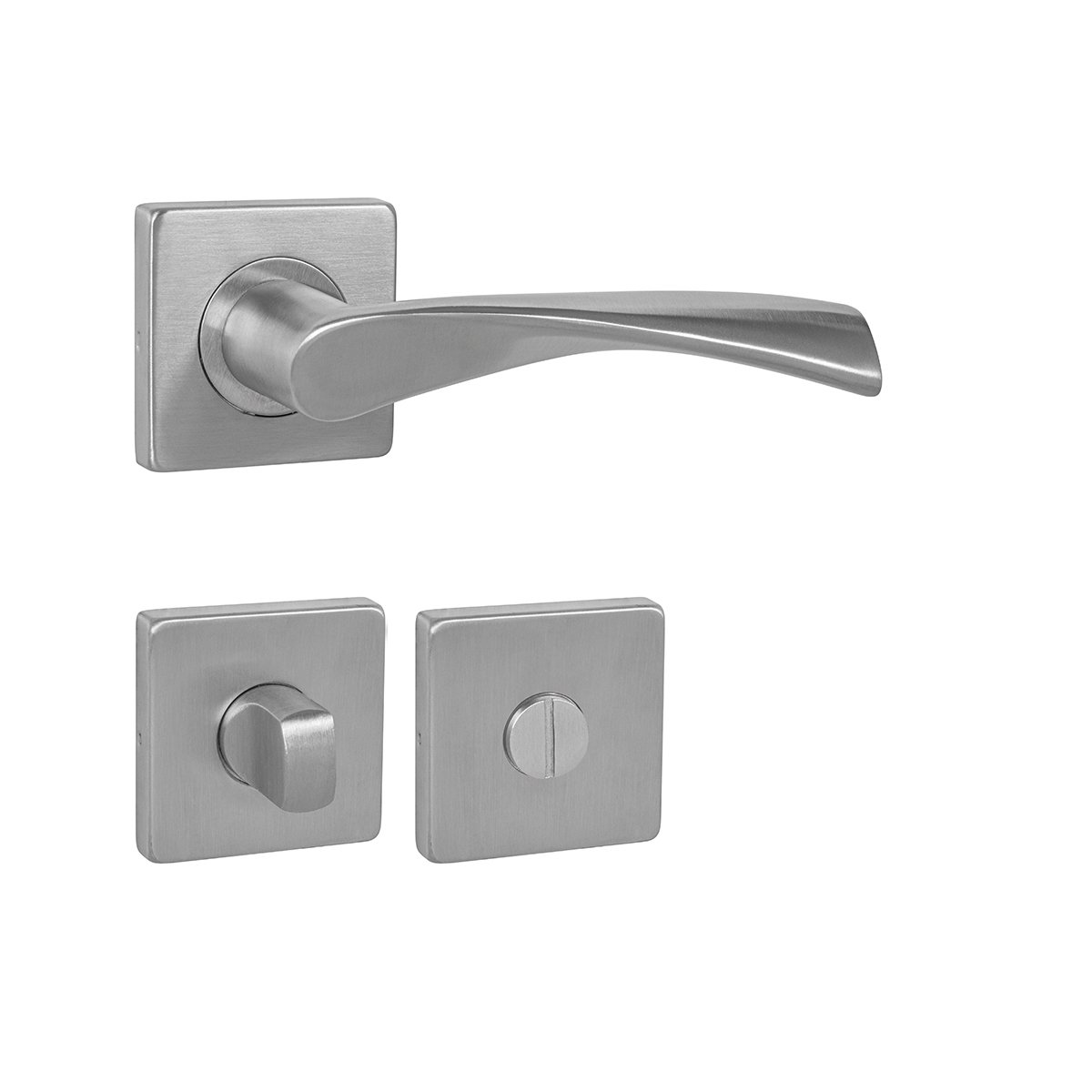 Rozetová klika na interiérové dveře s hranatou rozetou je vyrobena z vysoce kvalitní nerezavějící oceli, známé jako nerez a je povrchově upravena. Rozeta má rozměry 54 mm x 54 mm a tloušťku 9 mm. Je barevně stabilní a odolná vůči opotřebení. Kování je testováno dle normy ČSN EN 1906: 2012 na 200 000 cyklů.