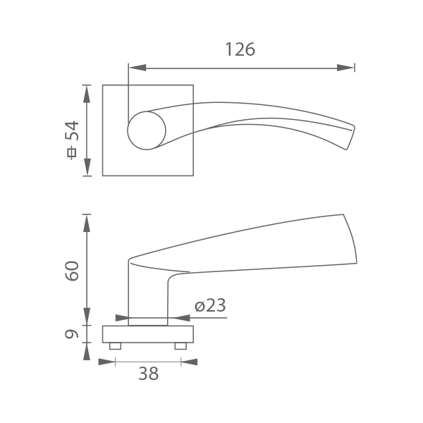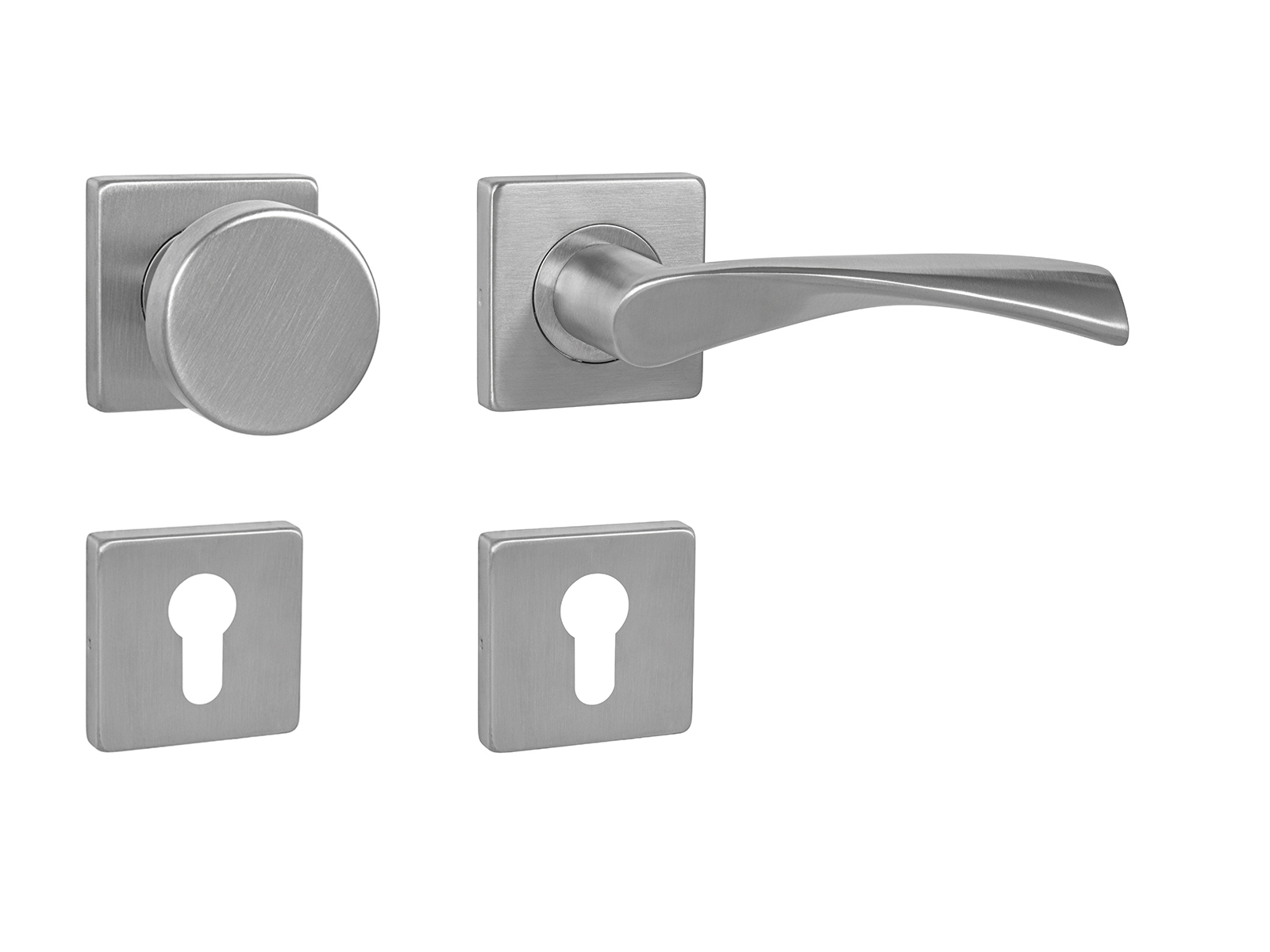 Rozetová klika na interiérové ​​dveře s hranatou rozetou je vyrobena z vysoce kvalitní nerezavějící oceli, známé jako nerez a je povrchově upravena. Rozeta má rozměry 54 mm x 54 mm a tloušťku 9 mm. Je barevně stabilní a odolná vůči opotřebení. Kování je testováno dle normy ČSN EN 1906: 2012 na 200 000 cyklů.