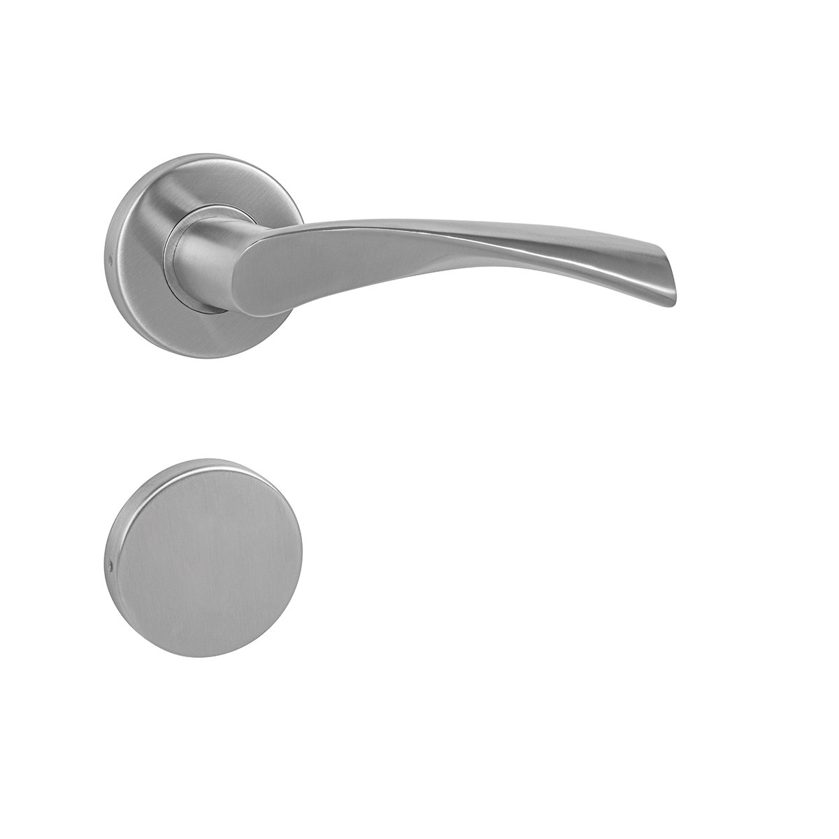 Rozetová klika na interiérové ​​dveře s kulatou rozetou z kvalitní nerezavějící oceli, známé jako nerez a je povrchově upravena. Rozeta má průměr 54 mm a tloušťku 9 mm. Je barevně stabilní a odolná vůči opotřebení. Kování je testováno dle normy ČSN EN 1906: 2012 na 200 000 cyklů.