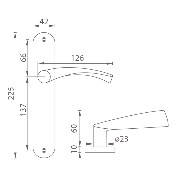 Štítová klika na interiérové dveře s oválným štítem je vyrobena z vysoce kvalitní nerezavějící oceli, známé jako nerez a je povrchově upravena. Oválný štít má rozměry 42 mm x 225 mm.