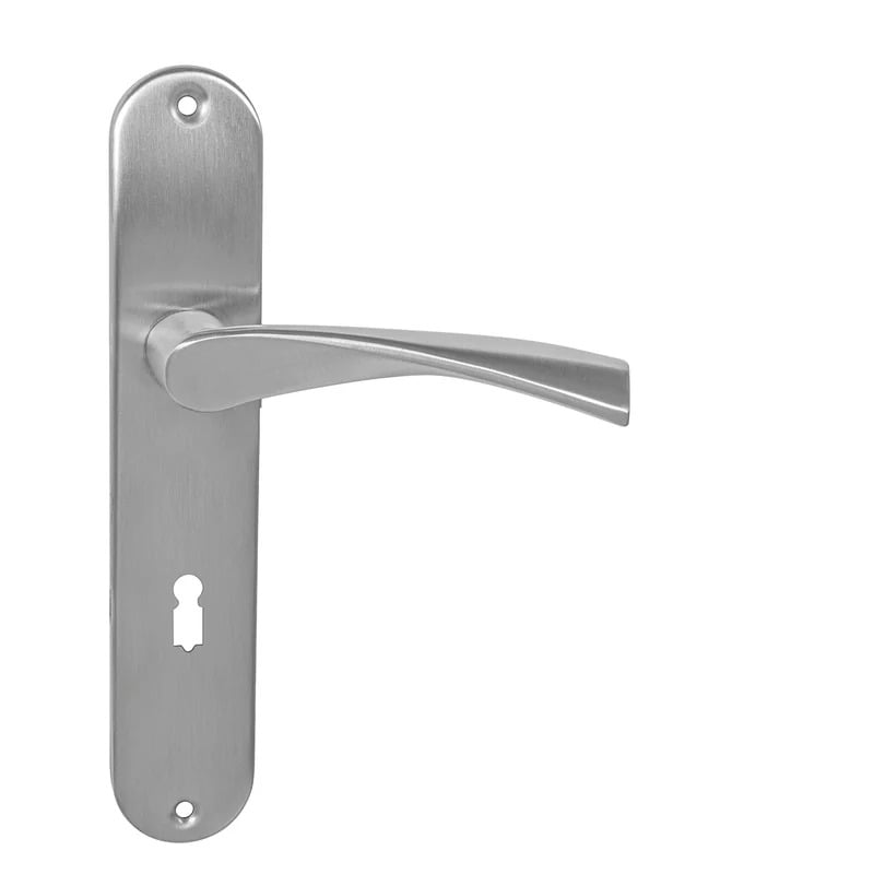 Štítová klika na interiérové dveře s oválným štítem je vyrobena z vysoce kvalitní nerezavějící oceli, známé jako nerez a je povrchově upravena. Oválný štít má rozměry 42 mm x 225 mm.