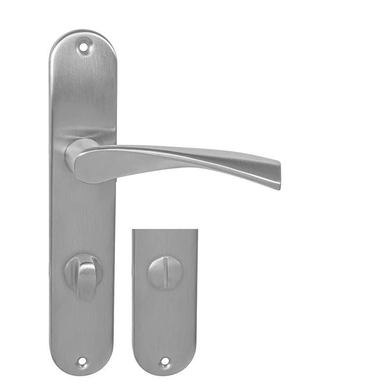 Štítová klika na interiérové ​​dveře s oválným štítem je vyrobena z vysoce kvalitní nerezavějící oceli, známé jako nerez a je povrchově upravena. Oválný štít má rozměry 42 mm x 225 mm.