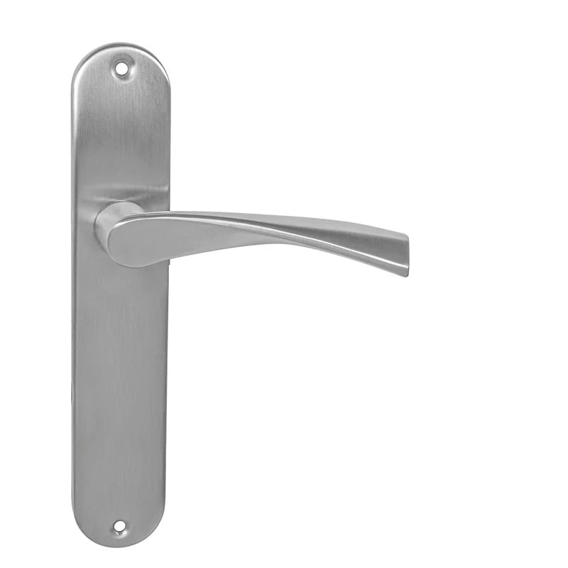 Štítová klika na interiérové dveře s oválným štítem je vyrobena z vysoce kvalitní nerezavějící oceli, známé jako nerez a je povrchově upravena. Oválný štít má rozměry 42 mm x 225 mm.