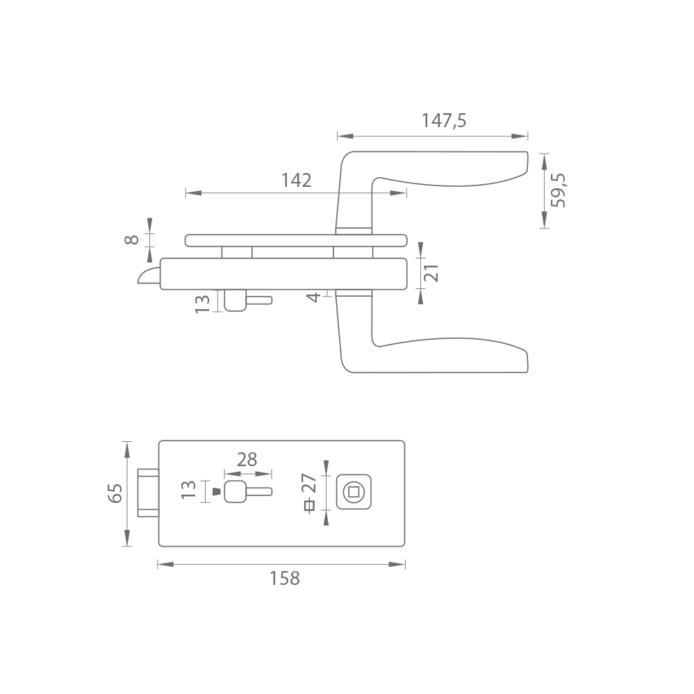 Otvor pro kliku obsahuje vymezovací mechanismus pro maximální eliminování vůle čtyřhranu. Mechanismus zámku umožňuje nastavení síly pružiny a napomáhá udržování kliky v horizontální poloze.