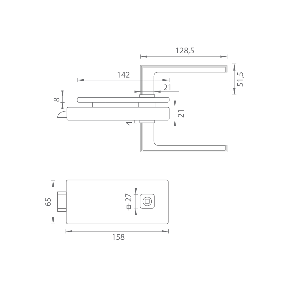 Otvor pro kliku obsahuje vymezovací mechanismus pro maximální eliminování vůle čtyřhranu. Mechanismus zámku umožňuje nastavení síly pružiny a napomáhá udržování kliky v horizontální poloze.