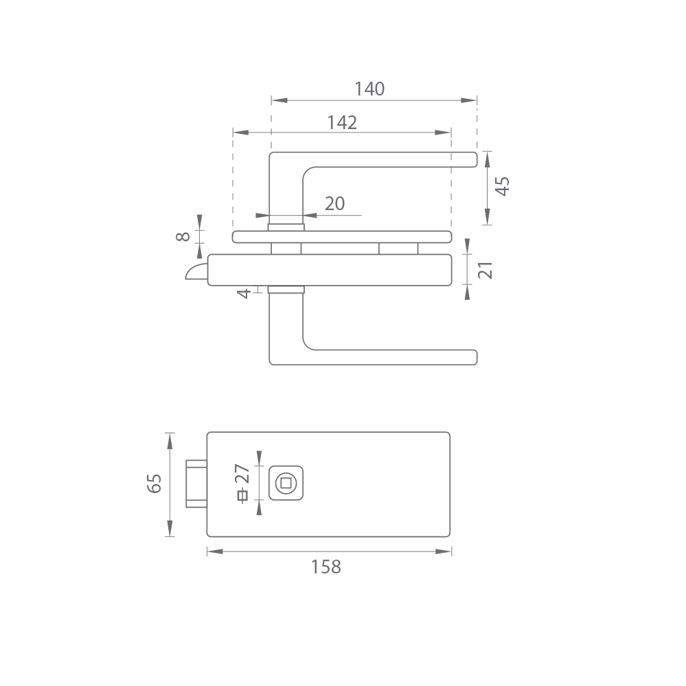 Otvor pro kliku obsahuje vymezovací mechanismus pro maximální eliminování vůle čtyřhranu. Mechanismus zámku umožňuje nastavení síly pružiny a napomáhá udržování kliky v horizontální poloze.