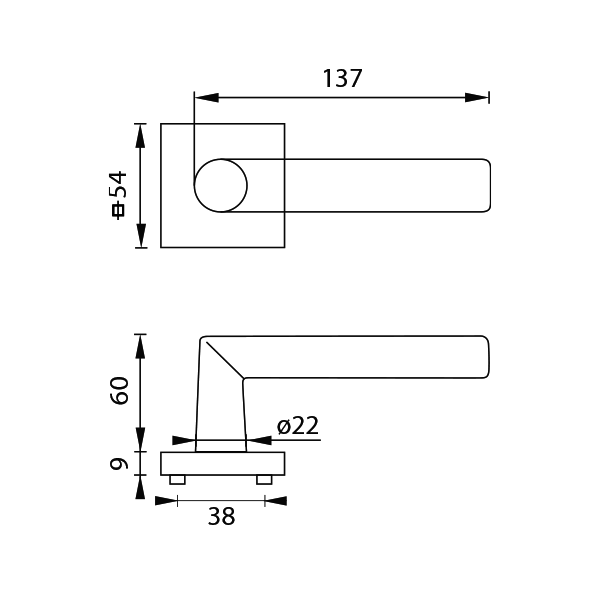 Rozetová klika na interiérové ​​dveře s hranatou rozetou je vyrobena z vysoce kvalitní nerezavějící oceli, známé jako nerez a je povrchově upravena. Rozeta má rozměry 54 mm x 54 mm a tloušťku 9 mm. Je barevně stabilní a odolná vůči opotřebení. Kování je testováno dle normy ČSN EN 1906: 2012 na 200 000 cyklů.