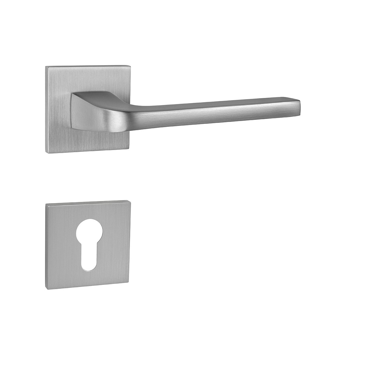 Rozetová klika na interiérové ​​dveře s hranatou rozetou je vyrobena odléváním z kvalitních slitin zinku a hliníku a je povrchově upravena. Klika je povrchově upravována galvanizací a vyznačuje se vysokou odolností proti oděru. Kování je testováno na 100 000 cyklů.