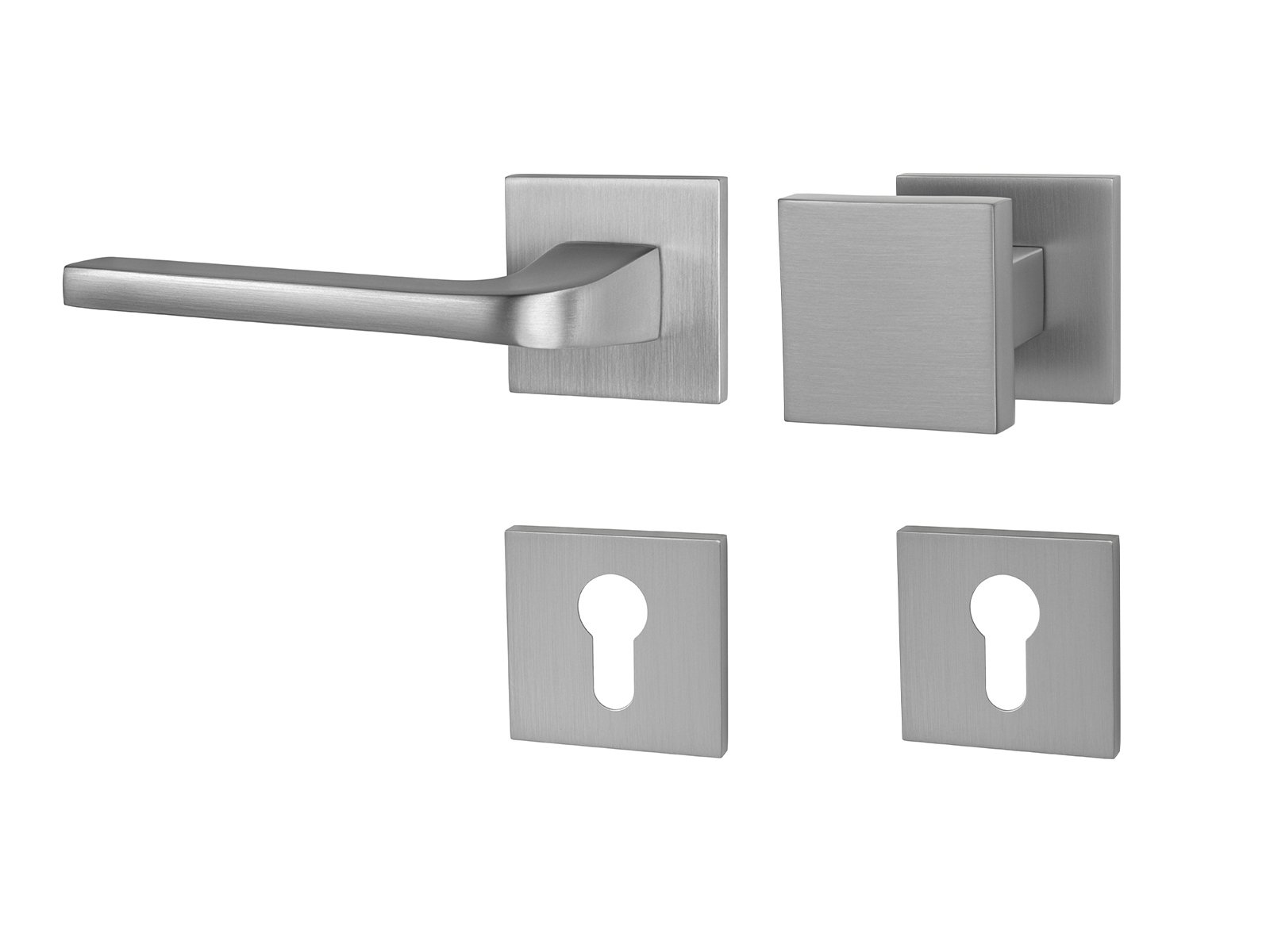 Rozetová klika na interiérové ​​dveře s hranatou rozetou je vyrobena odléváním z kvalitních slitin zinku a hliníku a je povrchově upravena. Klika je povrchově upravována galvanizací a vyznačuje se vysokou odolností proti oděru. Kování je testováno na 100 000 cyklů.