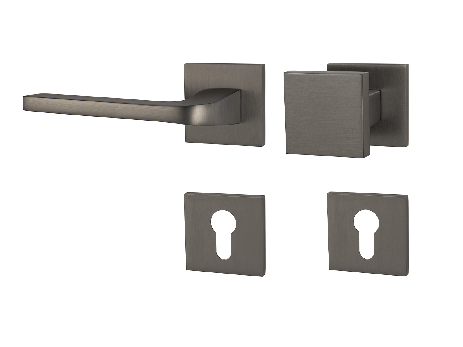 Rozetová klika na interiérové ​​dveře s hranatou rozetou je vyrobena odléváním z kvalitních slitin zinku a hliníku a je povrchově upravena. Klika je povrchově upravována galvanizací a vyznačuje se vysokou odolností proti oděru. Kování je testováno na 100 000 cyklů.
