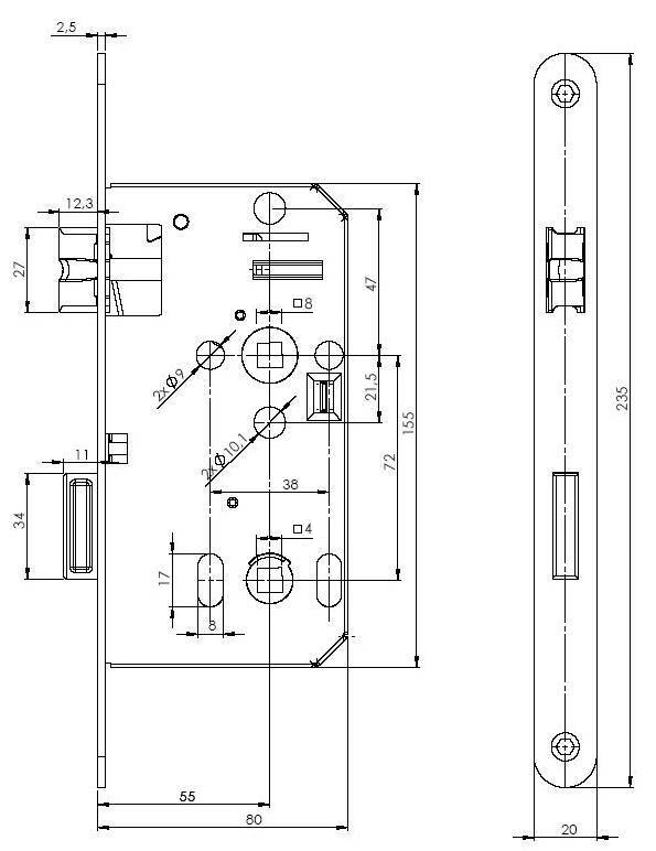 MP - Zadlabací zámek WC 72/80 - D 2355 P Bílý pozink - WC klíč - 72 mm (4/4)