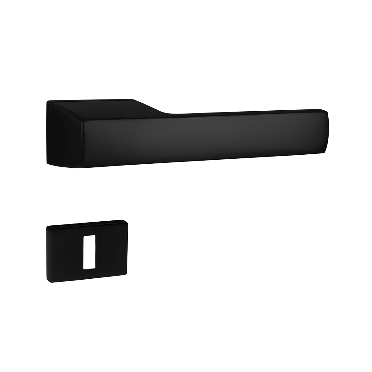 Elegantní obdélníková klika na interiérové dveře je vyrobena z hliníku a rozeta z odolného zamaku. Klika vyniká mimořádně nízkou hmotností a robustní konstrukcí, a proto je manipulace s ní pohodlná i při každodenním používání. Precizní zaoblené hrany rukojeti zajišťují, že její jednoduchý hranatý tvar skvěle padne do ruky. Rozeta s kovovými montážními výstupky je navržena tak, že nepřesahuje obrys kliky.