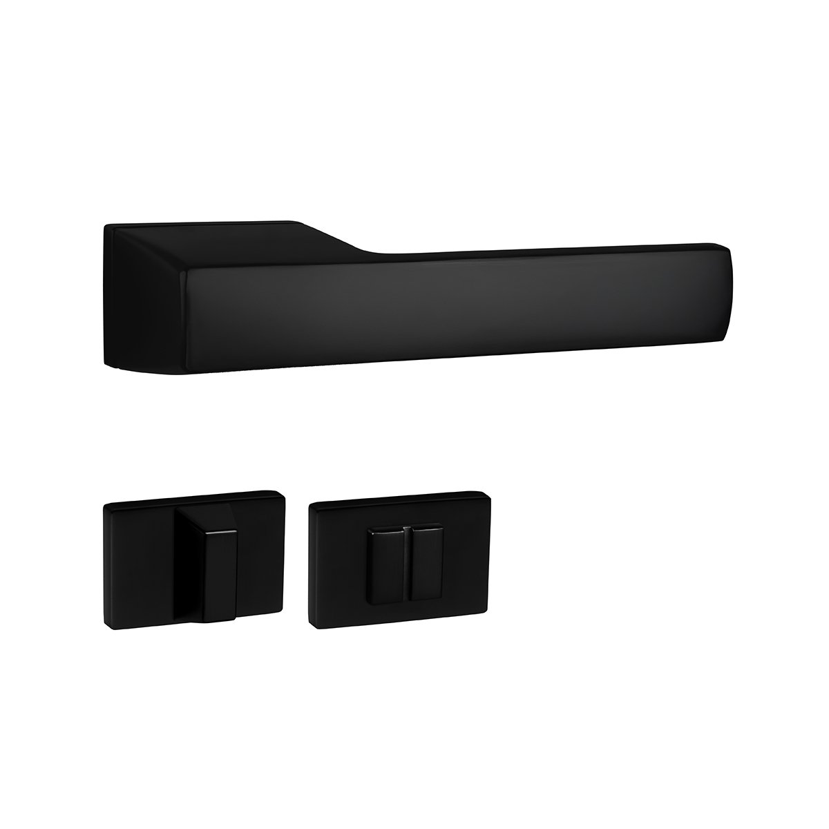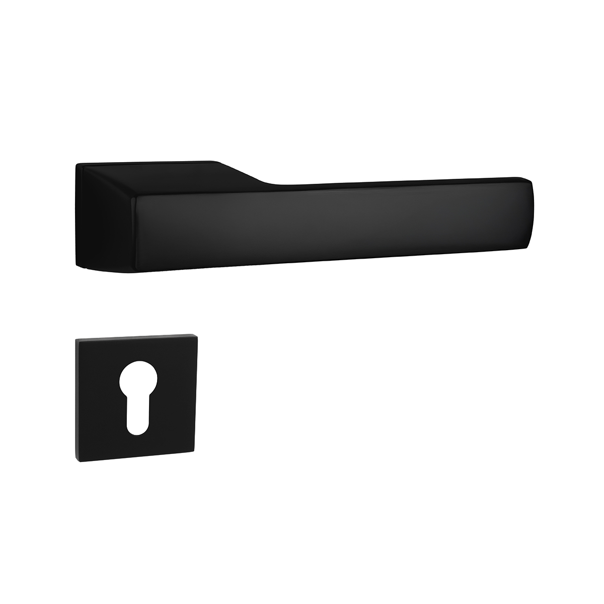 Elegantní obdélníková klika na interiérové dveře je vyrobena z hliníku a rozeta z odolného zamaku. Klika vyniká mimořádně nízkou hmotností a robustní konstrukcí, a proto je manipulace s ní pohodlná i při každodenním používání. Precizní zaoblené hrany rukojeti zajišťují, že její jednoduchý hranatý tvar skvěle padne do ruky. Rozeta s kovovými montážními výstupky je navržena tak, že nepřesahuje obrys kliky.