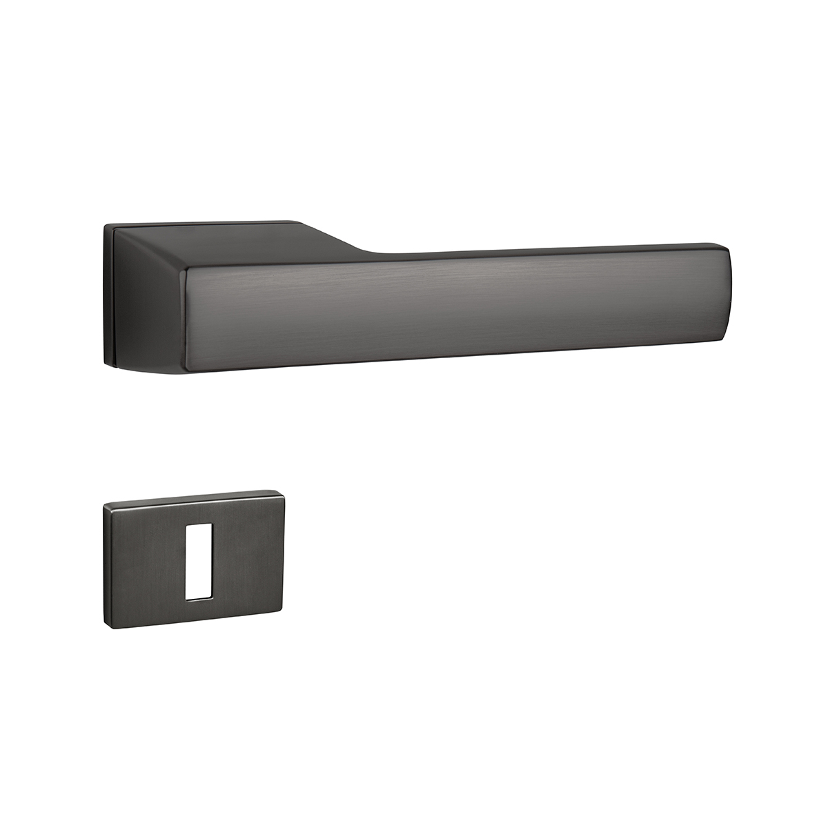 Elegantní obdélníková klika na interiérové dveře je vyrobena z hliníku a rozeta z odolného zamaku. Klika vyniká mimořádně nízkou hmotností a robustní konstrukcí, a proto je manipulace s ní pohodlná i při každodenním používání. Precizní zaoblené hrany rukojeti zajišťují, že její jednoduchý hranatý tvar skvěle padne do ruky. Rozeta s kovovými montážními výstupky je navržena tak, že nepřesahuje obrys kliky.