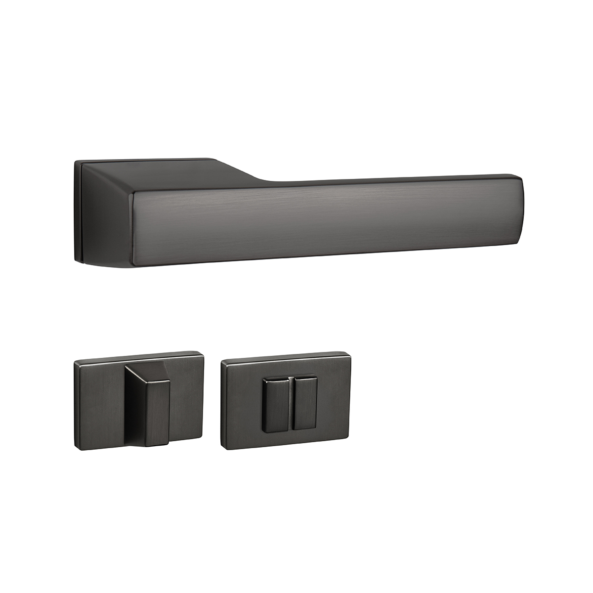 Elegantní obdélníková klika na interiérové dveře je vyrobena z hliníku a rozeta z odolného zamaku. Klika vyniká mimořádně nízkou hmotností a robustní konstrukcí, a proto je manipulace s ní pohodlná i při každodenním používání. Precizní zaoblené hrany rukojeti zajišťují, že její jednoduchý hranatý tvar skvěle padne do ruky. Rozeta s kovovými montážními výstupky je navržena tak, že nepřesahuje obrys kliky.
